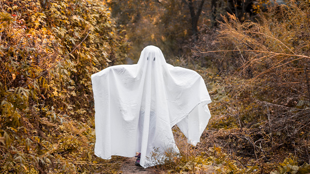 Um clássico. Pode comprar um fato já preparado, ou fazer um em casa. Se optar pela segunda hipótese, pode, por exemplo, aproveitar peças de roupa escuras que não queira voltar a usar e pintá-las com tinta branca. Se a tinta brilhar no escuro, melhor ainda!