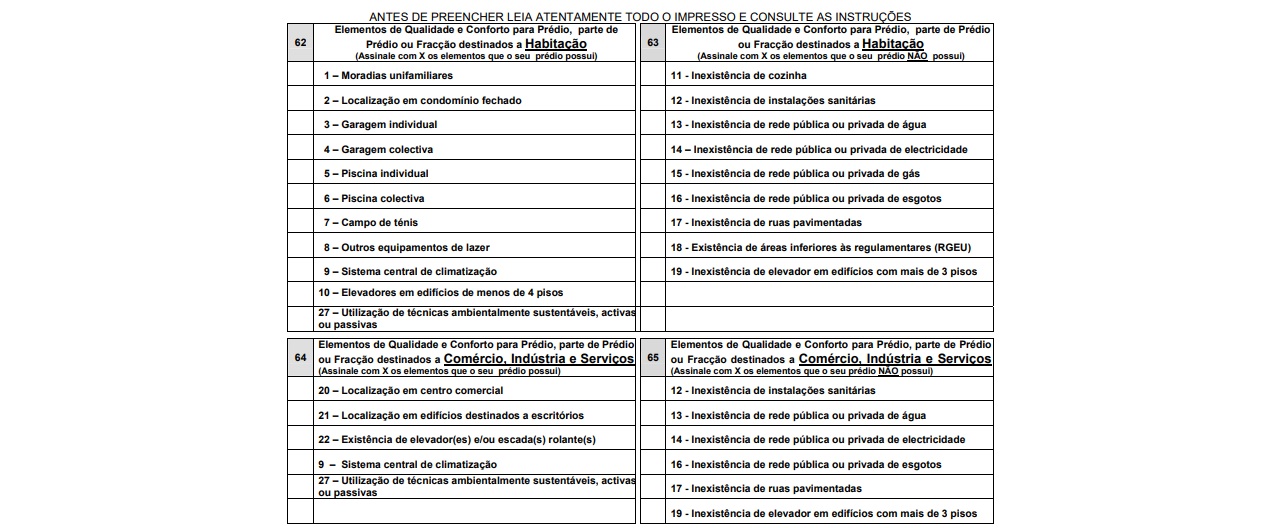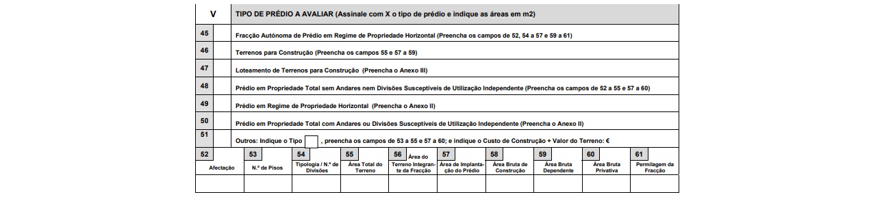 Em cada declaração deve ser indicado apenas um tipo de prédio, e essa escolha condiciona o resto do preenchimento, porque cada situação segue uma lógica própria.
