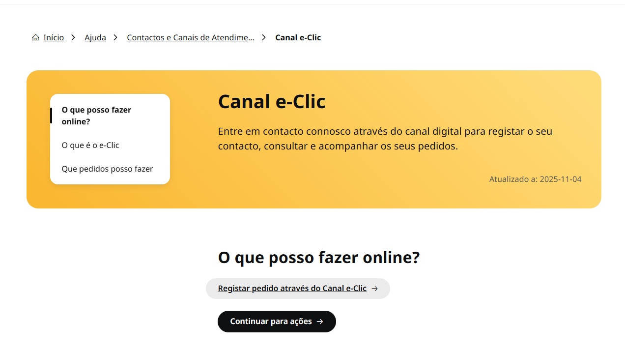Em vez de preencher formulários dispersos ou enviar emails que acabam por se perder, o e-Clic organiza tudo num único canal. Depois de criar um pedido, fica imediatamente com uma referência e pode acompanhar o estado do processo em tempo real.